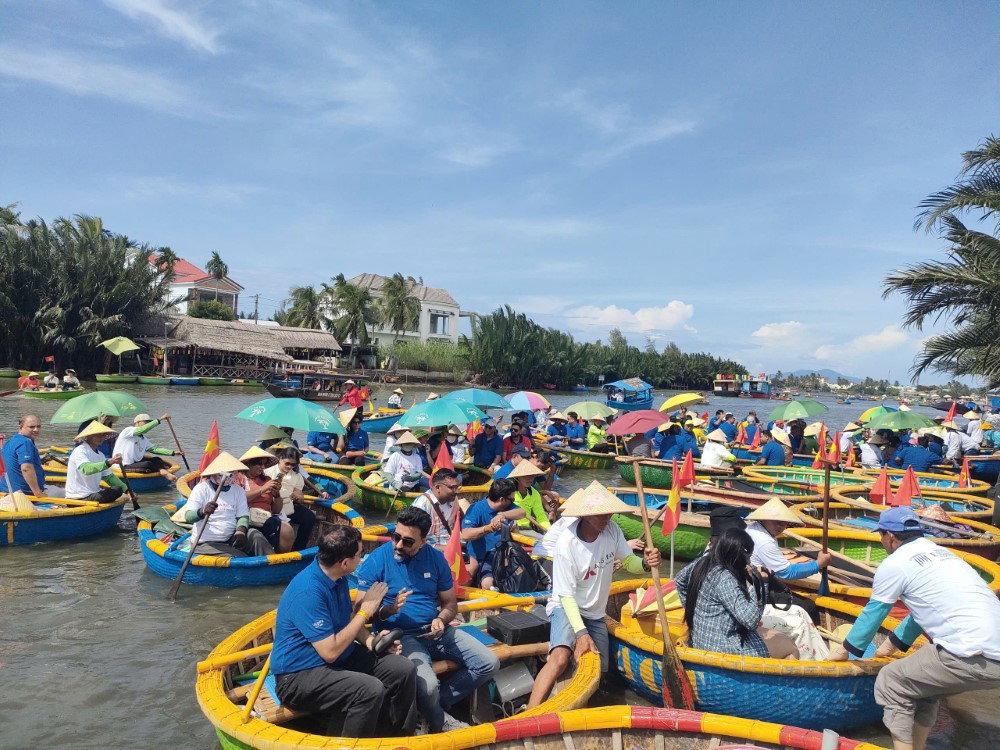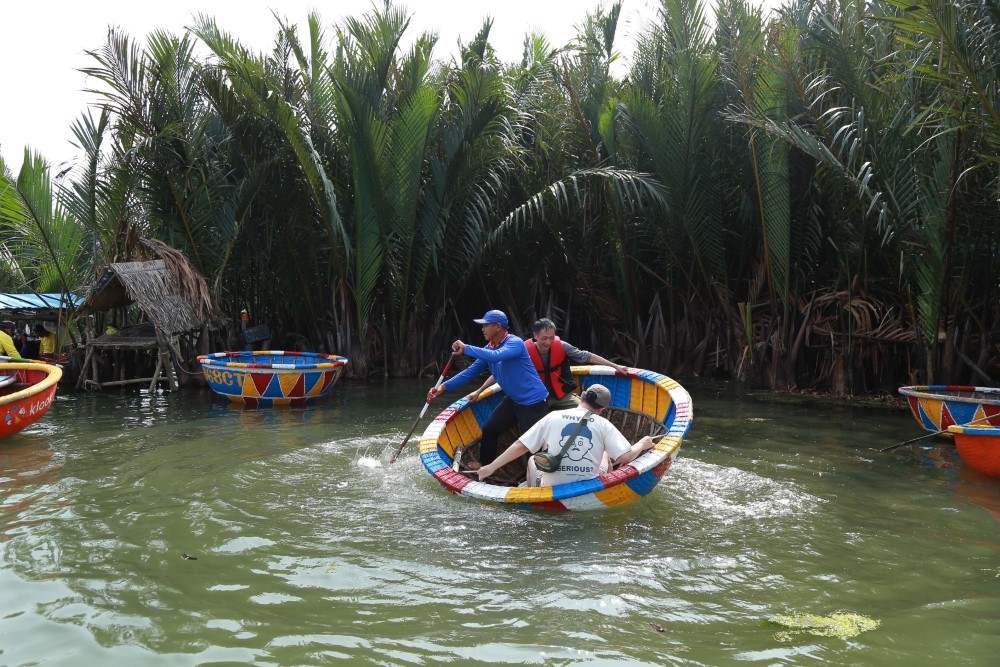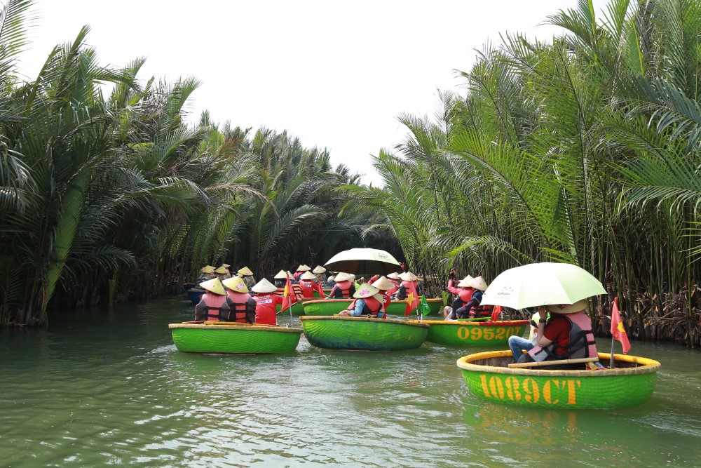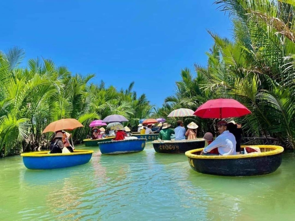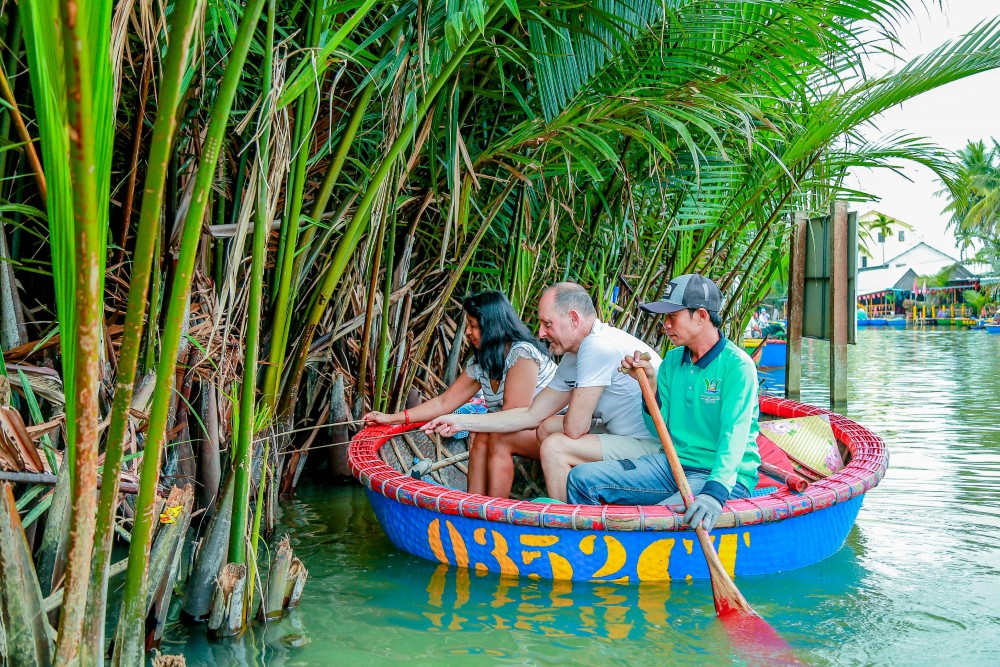 The standard boat ride takes exactly 45 to 60 minutes. This gives you plenty of time to explore the water coconut forest, watch the spinning boat performance, and take beautiful photos on the Thu Bon River.