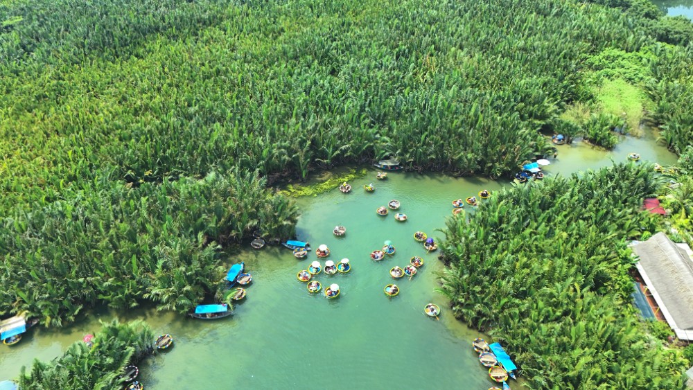 This activity does not happen in the center of Hoi An Ancient Town. You will find the Bay Mau coconut forest in Cam Thanh Commune. It sits exactly 5 to 7 kilometers southeast of the ancient town and about 30 kilometers from Da Nang. The forest covers over 100 hectares in the Thu Bon river delta, with water flowing directly toward Cua Dai Beach. During the war, this dense nipa palm forest served as a hidden military base. Today, the government protects it as a prime destination for eco-tourism in Vietnam.